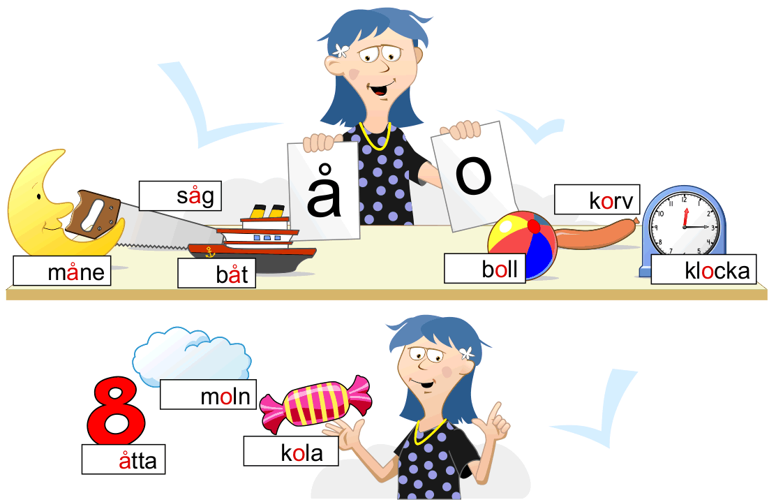 Å-ljudet stavas med å eller o. Långt å-ljud stavas oftast med å.