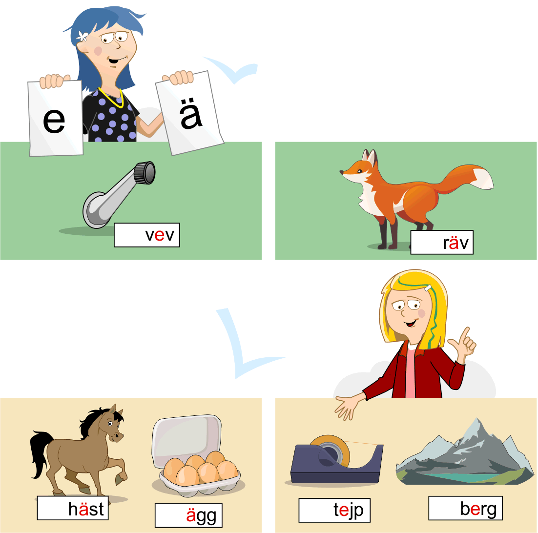 Långt e-ljud stavas med e. Långt ä-ljud stavas med ä.