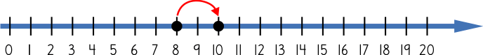 Börja på 8. Räkna först upp till 10. Då har vi lagt till 2.[en:t_3]Aloita luvusta 8. Laske ensin lukuun 10 asti. Silloin olemme lisänneet lukuun 2.Begynn på 8. Tell først opp til 10. Da har vi lagt til 2.