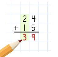 24 ja 15.Slik adderer du tallene