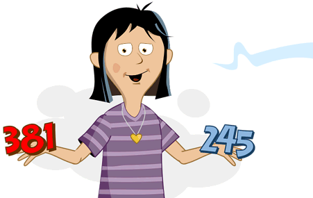 381 och 245.[en:t_1]Näin lasket yhteen luvut