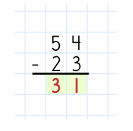 54 - 23 = 31[en:t_15]Nyt sinulla on vastaus.