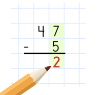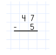 47 - 5 = 42[en:t_14]Kymmenet eivät muutu.