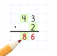 Multiplikation uppställning – Ensiffrig med tvåsiffrig utan minnessiffra.[en:t_header]Kertolaskun muodostaminen – Yksinumeroinen kaksinumeroisen kanssa ilman muistinumeroa.Multiplikasjon oppstilling – Ensifret med tosifret uten minnesiffer.