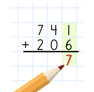 Summaksi tulee 7. Kirjoita 7 viivan alle.