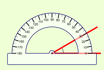 För att mäta vinklar så använder man en gradskiva. Lägg gradskivan så att ena linjen går igenom 0°. Då kan du läsa av vinkeln där den andra linjen går genom gradskivan.