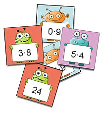 En serie memoryspel för att lära sig mulitiplikationstabellerna. Försök att para ihop en multiplikation med korrekt produkt. Kombinera gärna korten från olika multiplikationstabeller men välj då ut korten så att det blir ett lagom antal.