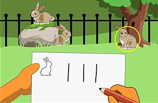 Didi och Pim räknar djuren i djurparken. Då är det bra att räkna med streck.