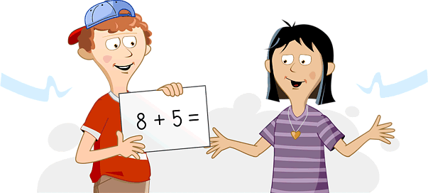 Vastaukseksi tulee: 8 + 5 = 13Vi har 3 igjen å legge til. Da havner vi på 13.