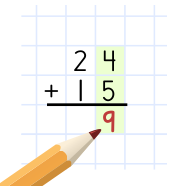 Börja från höger och addera entalen.