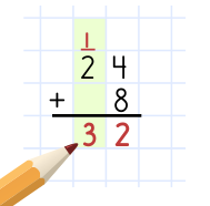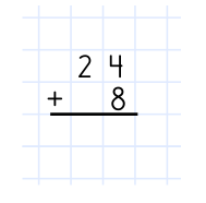 Ibland måste man använda en "minnessiffra". Så här adderar du talen 24 och 8.Joskus täytyy käyttää Noen ganger må man bruke en "minnesiffer". Slik adderer du tallene 24 og 8.