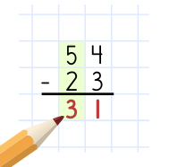 54 - 23 = 31[en:t_15]Nyt sinulla on vastaus.