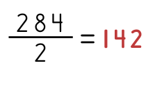 284 jaettuna luvulla 2 on 142.Nå har vi svaret!
