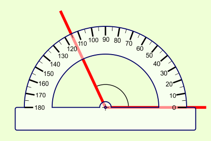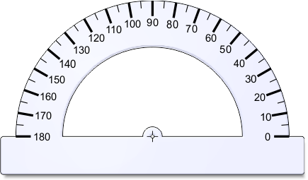 För att mäta vinklar så använder man en gradskiva. Lägg gradskivan så att ena linjen går igenom 0°. Då kan du läsa av vinkeln där den andra linjen går genom gradskivan.