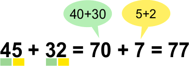 Börja med att lägga ihop tiotalen, det blir 40. Lägg sedan ihop entalen, det blir 12.