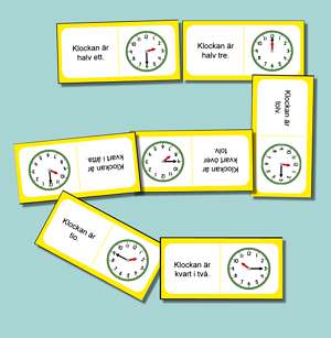 Används tillsammans med lektionen Klock-Bingo. Skriv ut så många brickor du behöver. Brickorna finns i färg eller svartvitt.