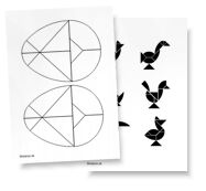 En rolig variant på tangram. Klipp ut och måla gärna bitarna i olika färger. Hur många olika fåglar kan du bygga? Kan du komma på hur de medföljande fågelsilhuetterna är gjorda? Var inte orolig - även lösningen ingår!
