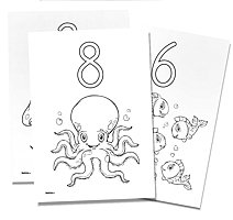 Varje tal är ett A4-ark. Sätt med fördel upp dem vartefter ni lär er siffrorna. Tillsammans bildar de ett långt dekorativt akvarium.
