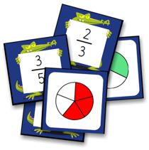 Memoryspel för att lära sig bråktal. Korten från spelen går att kombinera till ett extra stort memoryspel om man vill.