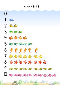 Ett A4-ark med fiskar 0 till 10. Delas ut som stöd till elever eller sätts upp på väggen.