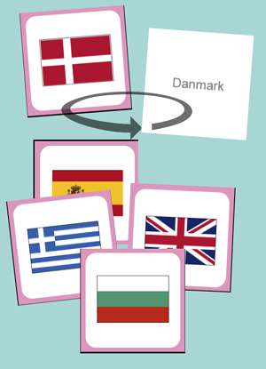 Skriv ut dubbelsidigt så att bild och tillhörande text ligger på olika sidor av korten. Använd gärna tjockt papper så att bilder och text inte syns igenom. Klipp ut korten.